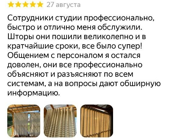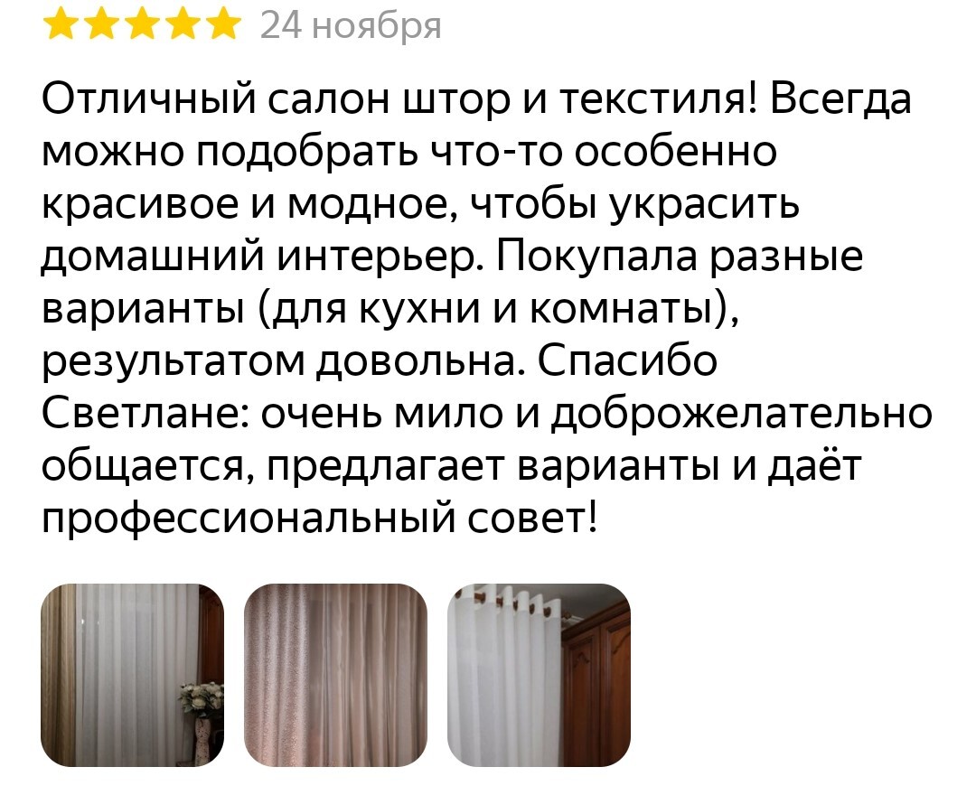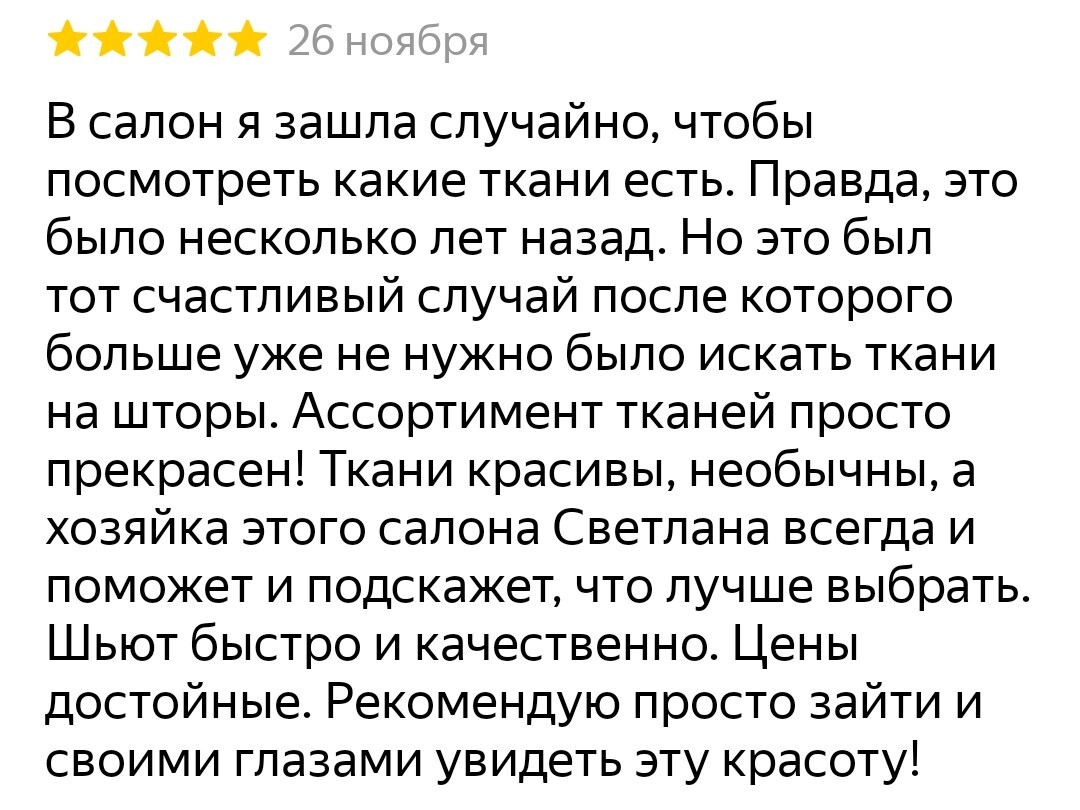 Мы работаем более 12 лет, создавая уникальные решения для каждого клиента. Нас выбрали уже более 500 семей, и более 1000 окон были украшены нашими шторами.